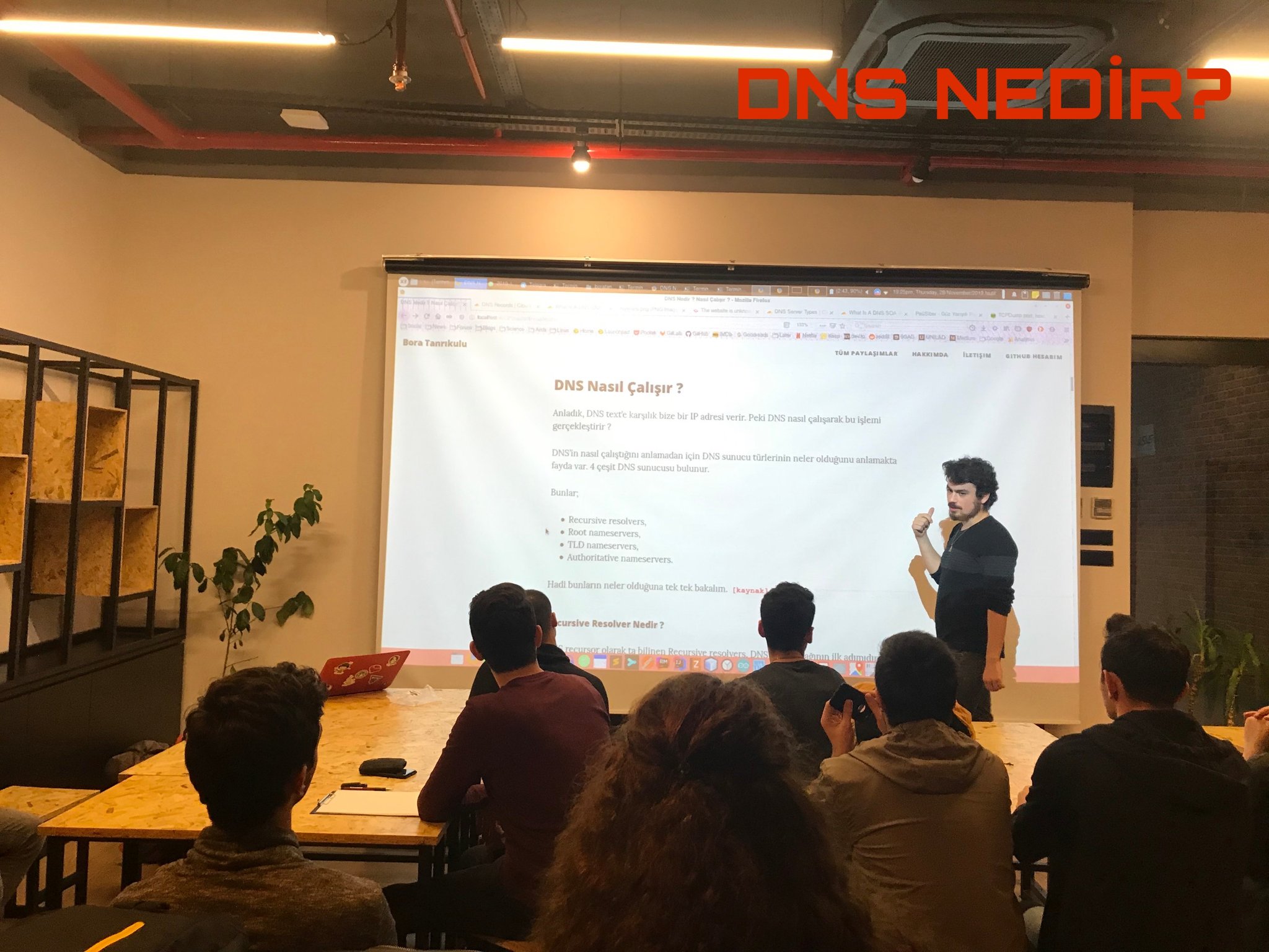 | Hafta - 9 25 Kasım, 01 Aralık | Android'e Giriş - II 26.11.2019 Salı MF A Blok K4-36 (Lab 3) 18.00 - 20.00 | Güvenlik Eğitimi Serisi 27.11.2019 Çarşamba MF A Blok K4-36 (Lab 3) 18.00 - 20.00 | DNS Nedir ?, Nasıl Çalışır ? Bora Tanrıkulu 28.11.2019 [E] [F] [D] | Siber Güvenlik Kampı Savunma Sanayi Başkanlığı & Siber Kulüpler Birliği 30 Kasım - 01 Aralık [F] | |